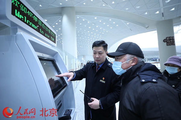 邵辰飞帮助旅客使用自助购票机。