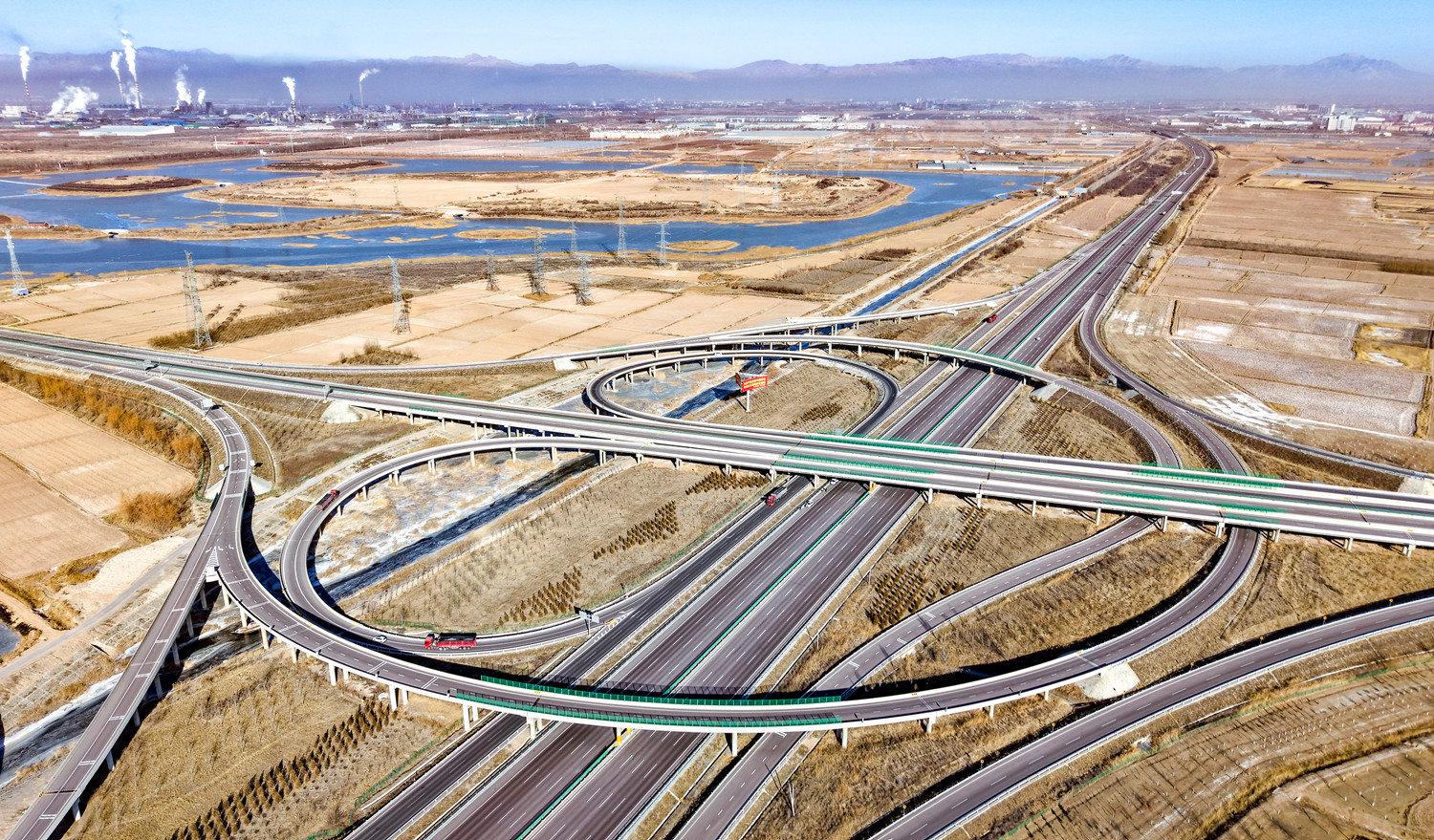在宁夏,现代化交通网络正在不断延展。京藏高速平罗南枢纽的立交桥如同音符般排列,勾勒出一幅壮丽的画卷。最新数据显示,全区公路总里程已突破3.9万公里,高速公路通车里程达到2400公里以上,"三环四纵六横"的高速公路主骨架基本形成。这一网络使得全区22个县级行政中心和24个主要产业园区都能在20分钟内接入高速公路,极大提升了交通便利性。
